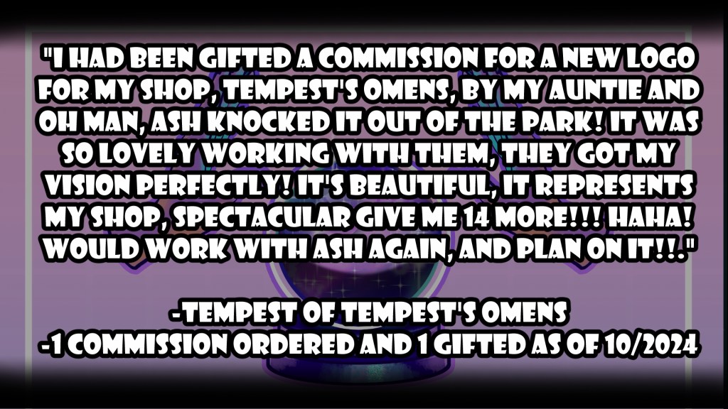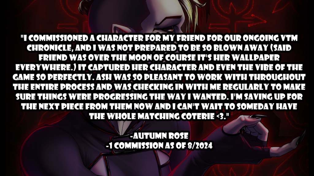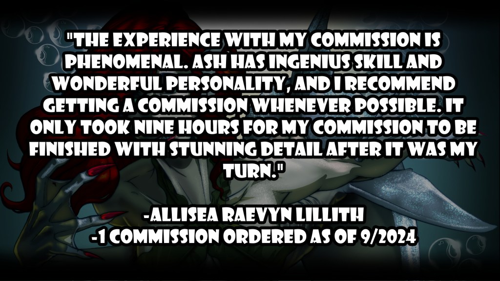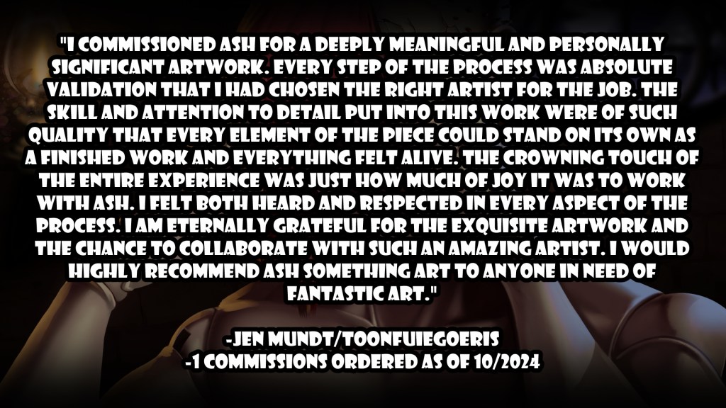 If you would rather stay here than switch platforms- which I prefer- just drop me a commission request directly via my email at info@ashsomething.art