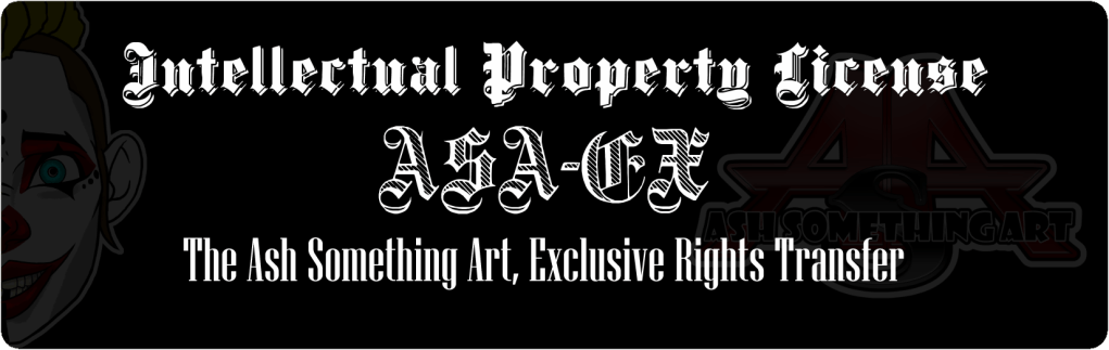 - This license is EXCLUSIVE and UNLIMITED – This license is considered the “Work For Hire” License on commissions ordered from Ash Something Art.